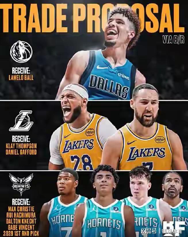 就在今日,Bleacher Report记者格雷格·斯沃茨抛出一套震动联盟的三方交易构想,涉及独行侠、湖人与黄蜂三支球队,方案一经发布便引发热议。具体交易框架如下: