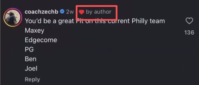这已经是西蒙斯最近1个星期第二次就76人话题跟网友互动,4天在他在INS上也曾经点赞一个网友的评论,当时网友说“马克西+埃奇库姆+乔治+本西+恩比德,这个阵容拉满了。”